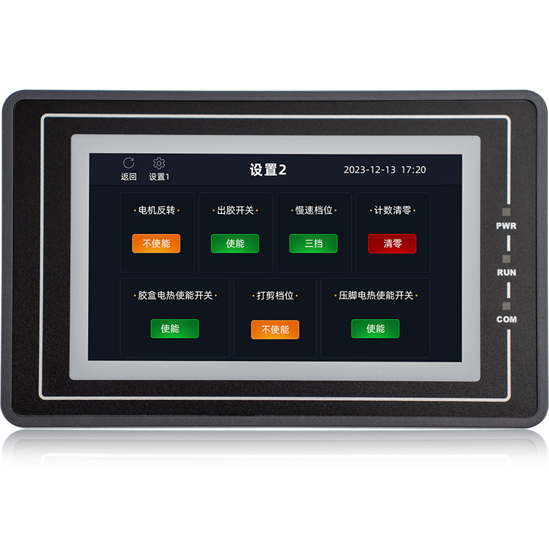金璽HMI應(yīng)用在超聲波控制上,安裝在控制機(jī)箱上對超聲波進(jìn)行數(shù)據(jù)設(shè)定和監(jiān)控。